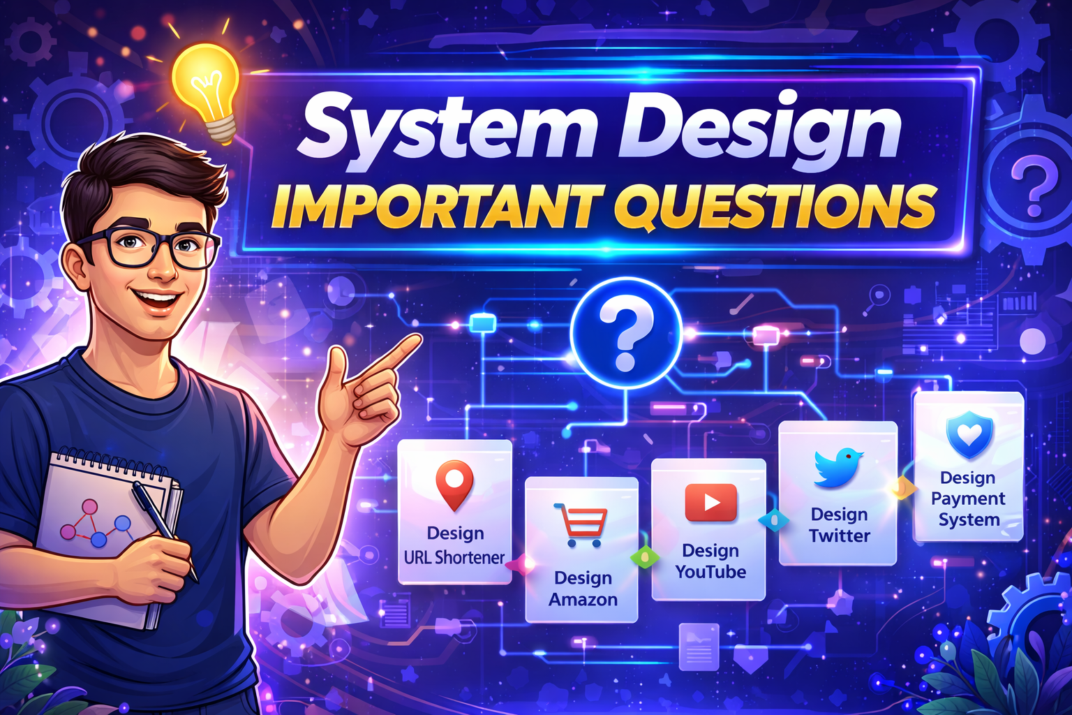 Master OOPs, SOLID, Design Patterns, and real interview problems like URL Shortner, Rate Limiter, Task Scheduler, Movie Booking System and 15 other important questions which are asked 80% of the times.